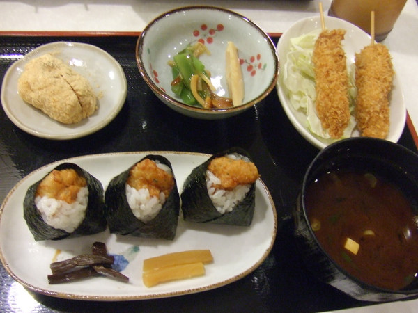 一入座大家毫不囉唆點了擁有炸串跟天むす的的mini set開始狼吞虎嚥XD