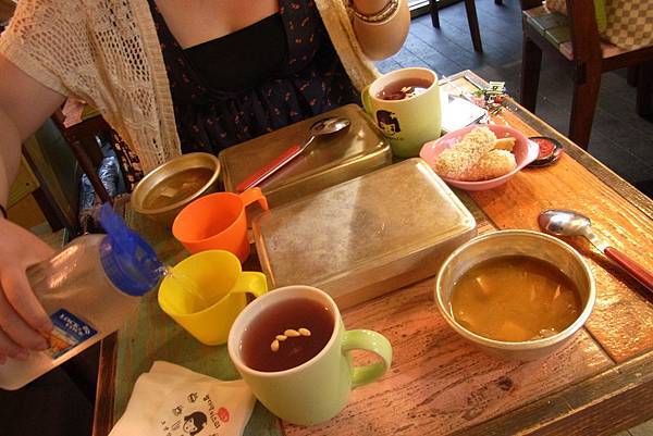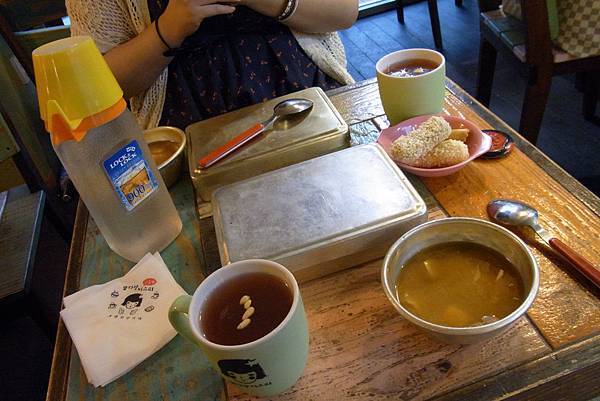 還有韓國味噌汁有點辣而且用鐵碗裝現在我們是在當兵嘛???XD