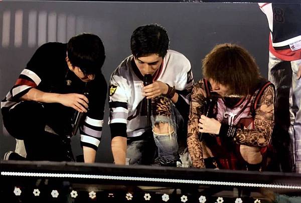 穿著(平常是演唱會最後穿出來賣的)周邊T,完全沒有任何的偶像華麗的衣裝跟SET 只看得到他們低著頭認真的演奏著他們各自的樂器